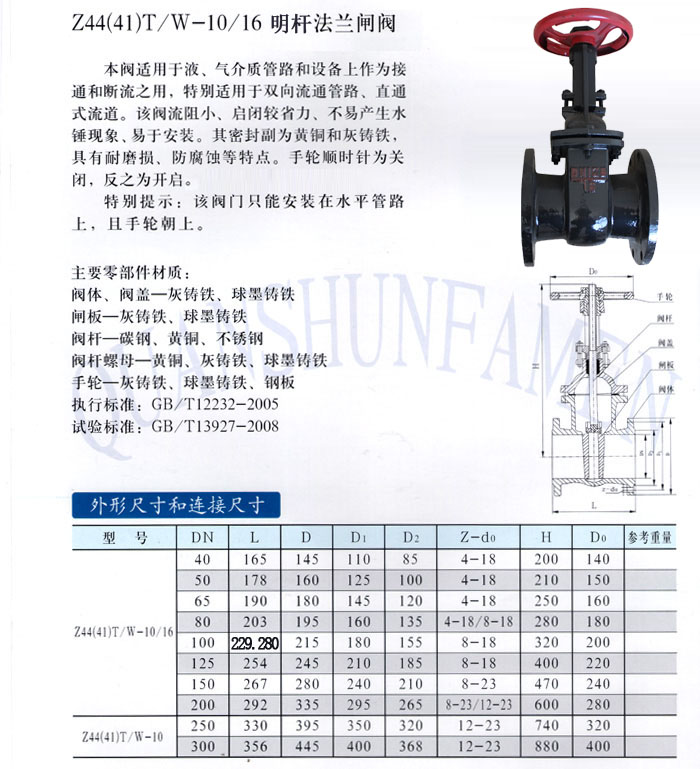 Z44(41)T/W-10/16 明桿法蘭閘閥
